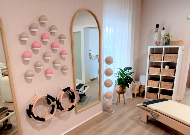 Our luxe mat & barre room has lovely wooden floors, extra large backlit mirrors with colours to suit the session and activities. It is air conditioned/heated. Additional supports such as foam pads and cushions can be used to keep you comfortable for floor activities.